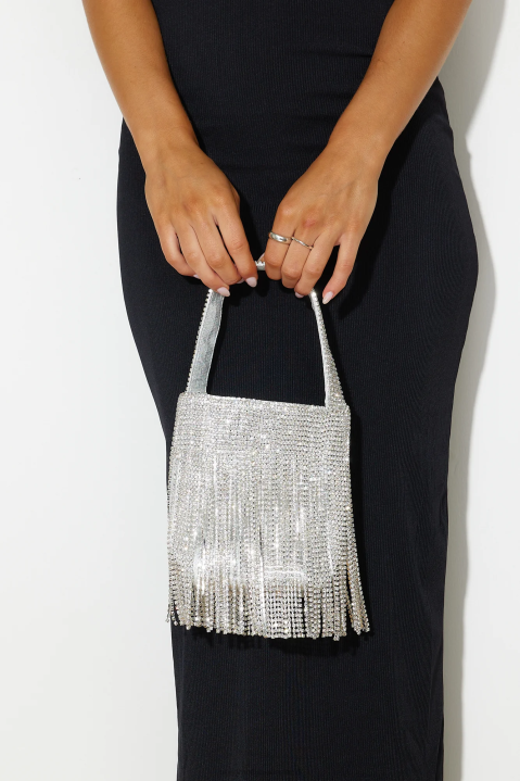 Home| accessoires| druipende diamanten tas zilver Hello Molly T6BF10211 accessoires