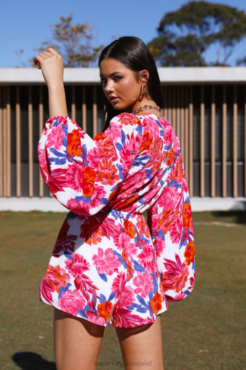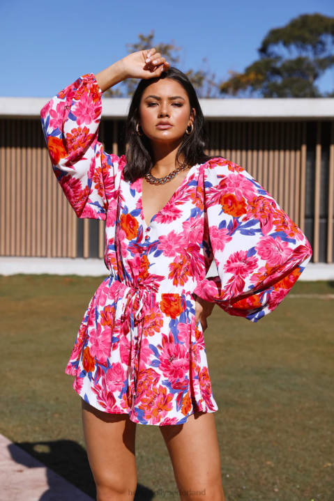 Hé, schattig spul, we hebben hier de keuze van het seizoen voor je: de geheime levensplaysuit. dit overgangsstuk heeft een v-halslijn met knoopsluiting aan de voorkant, lange mouwen en een zwierige short. laat je mooie karakter zien met bijpassende hakken en warrige golven!