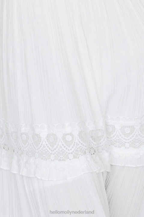 de maxi-jurk van Catch a Butterfly is een musthave! met een diepe v-halslijn en achterkant en een volle zwierige rok vanaf de taille. versierd met kanten panelen en randen. er is ook een onzichtbare ritssluiting aan de achterkant. style met een schattig sandaaltje!