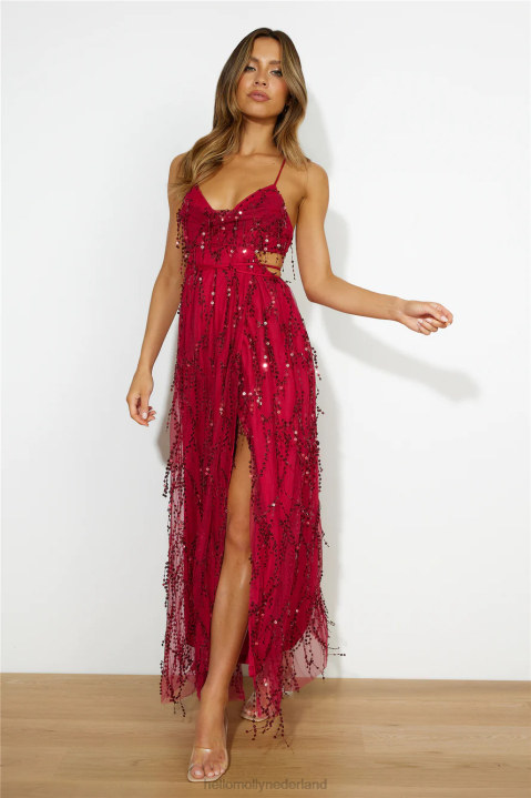 we hebben de perf maxi die aan je zijde blijft terwijl je onvergetelijke momenten beleeft. De midi-jurk voor het bloeiseizoen heeft een gewatteerde buste, een gedrapeerde halslijn, een open rug en een dramatische zijsplit. style de jouwe met muiltjes en gouden sieraden.