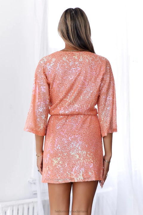 fade in jurk oranje pailletten Hello Molly T6BF2819 kleding