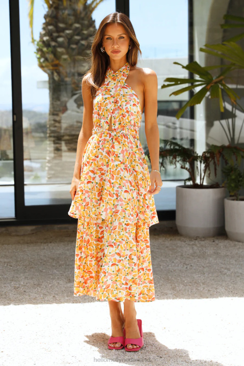 wees de helderste in de kamer en sta altijd in de schijnwerpers. De cynthia maxi heeft een halternek met knoopsluiting, een diepe halslijn, een lage rug en een zwierige rok. style de jouwe met muiltjes en golven.