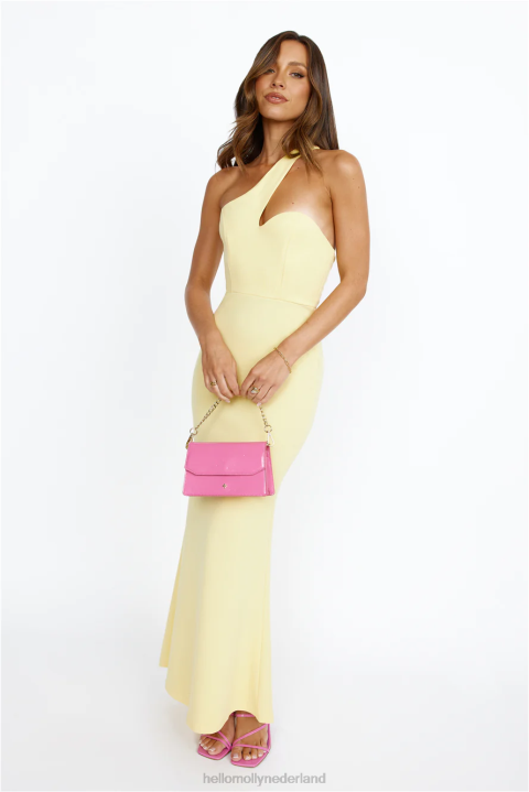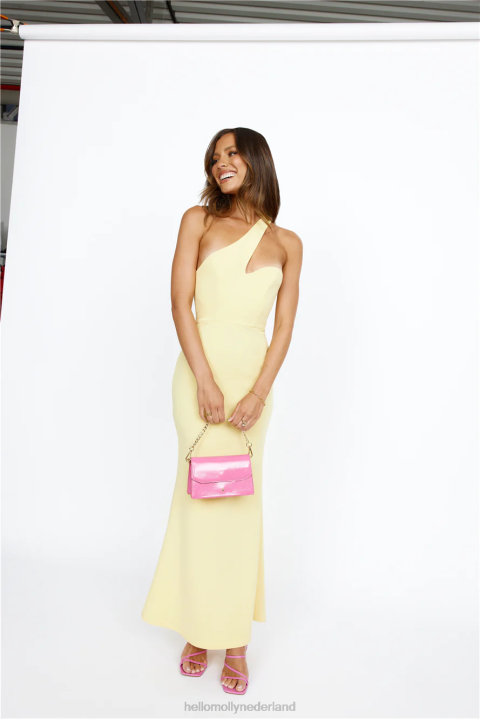 voor alle exclusieve meiden. De dance to it maxi-jurk heeft baleinen op het lijfje en een ontwerp met één schouder. stijl met hakken en krullen voor alle aandacht.