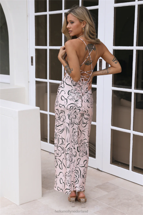 meisje, jurk om indruk te maken in de dromerige maxi-jurk. heeft een gewatteerde buste met een gedrapeerde halslijn, een dramatische uitsnede, een open rug en een zwierige rok. style de jouwe met hakken en golven.