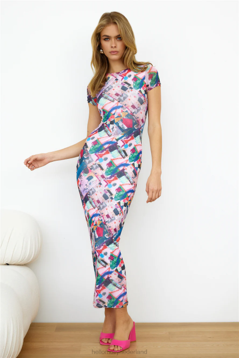 een kledingstuk om de eeuwwisseling te vieren. onze glitch mode maxi-jurk is het opvallende kledingstuk dat je garderobe nodig heeft! met een bodycon-pasvorm en abstracte print overal, style de jouwe met neutrale blokhakken en een mini-schoudertas voor een statement casual look!