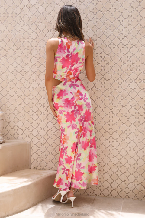 je bent klaar om alle likes te verdienen in deze jurk, meisje. de doorschijnende maxi-jurk heeft een elastische uitsparing en een mooi geprint ontwerp. stijl met kleine hakken en krullen voor een look waar we van houden.