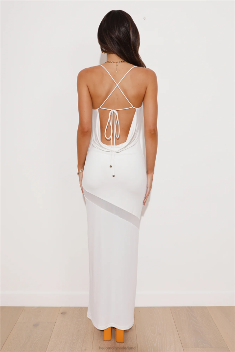 Het geeft luxe, meid. De maxi-jurk die heter is dan alle modellen heeft doorzichtige mesh-panelen en een gekruist knoopontwerp. stijl met hakken voor een chique evenement.