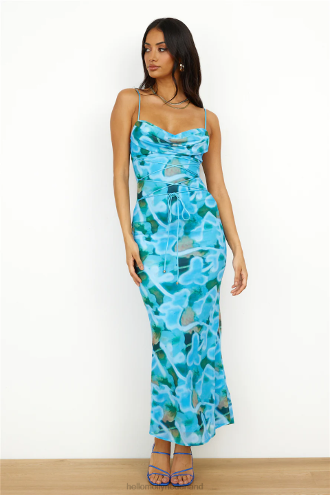 levendige kleuren maxi-jurk blauw crush Hello Molly T6BF6339 kleding