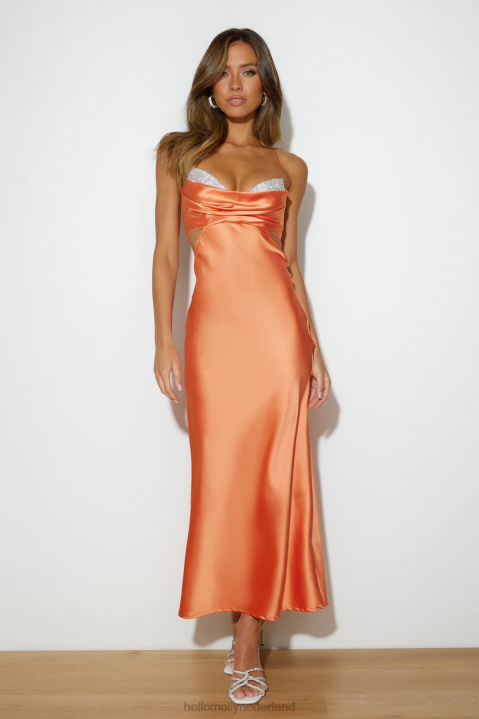 Dit is jouw reden om te winkelen, meid. De luxe maxi-jurk voor meisjes is voorzien van diamanten en uitsparingen. stijl met hakken en krullen voor alle aandacht.
