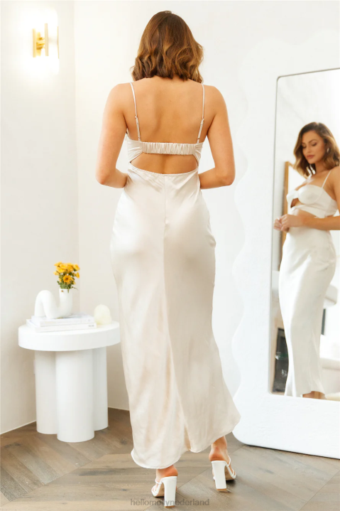 verwelkom de Miami-zon op de meest luxe manieren. slenter door de straten in deze maxi met een subtiele sweetheart halslijn, uitsnijdingen aan de voorkant, een open achterkant en een zwierige rok. style de jouwe met hakken en golven.