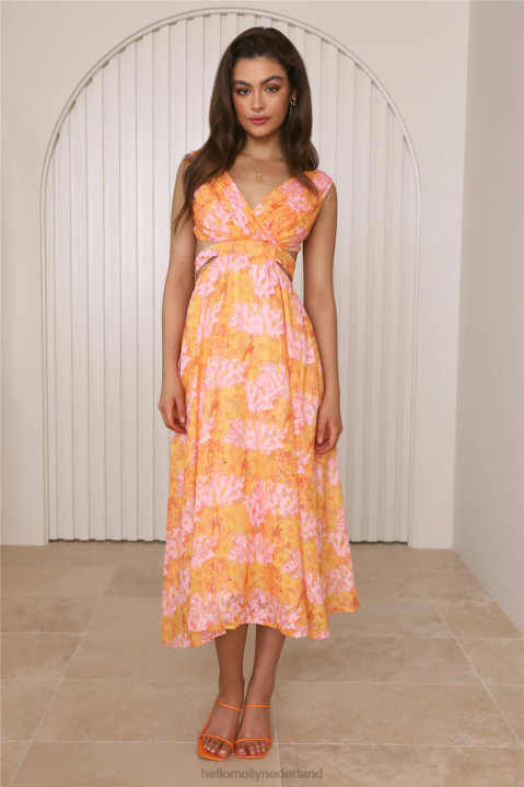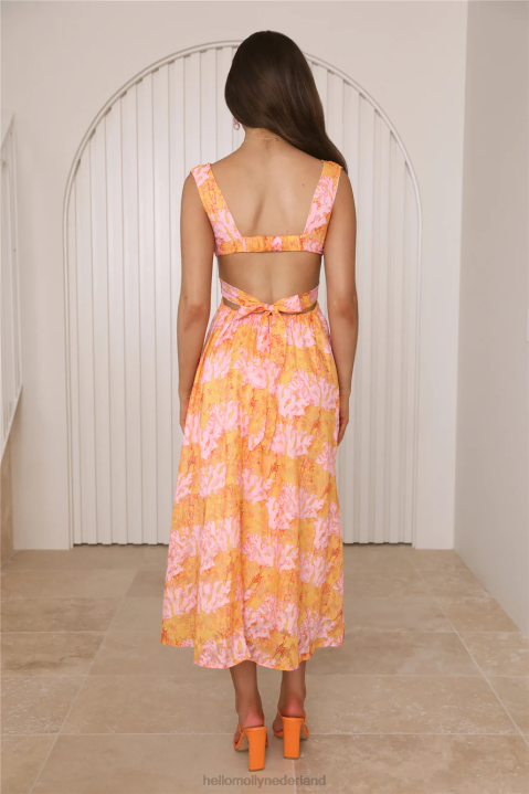 wees de bloemenkoningin in de maxi-jurk van de sprekende waarheid. voorzien van een diepe halslijn met strikband in de taille, een open rug en een zwierige rok. style de jouwe met hakken en een schoudertas.