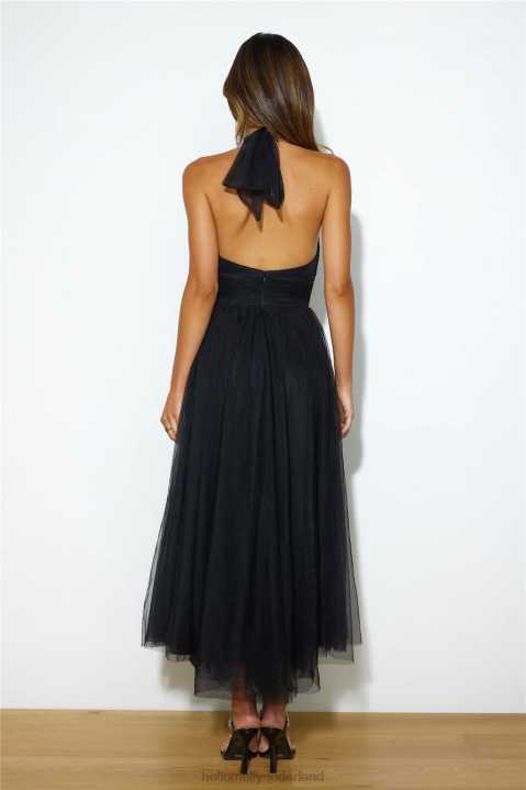 dingen staan op het punt allemaal op de meest prinsessige manier met elkaar verstrikt te raken. zoals dit prachtige exemplaar met een halternek met knoopsluiting, een open rug en een afwerking met tule. style de jouwe met een paar kleine hakken en oorbellen met diamanten.