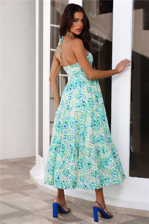 verrassingstuinfeest maxi-jurk met halternek groen Hello Molly T6BF5465 kleding
