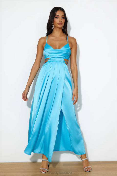 vroege ochtenden satijnen maxi-jurk blauw Hello Molly T6BF6273 kleding