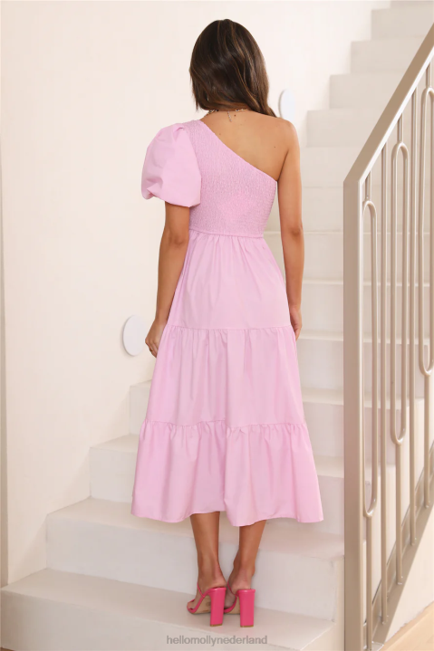 extra lief voor jou, meid. de beauty is you midi-jurk heeft een elastisch lijfje, één schouder pofmouwen en verborgen zakken. combineer met sandalen voor een schattige look.
