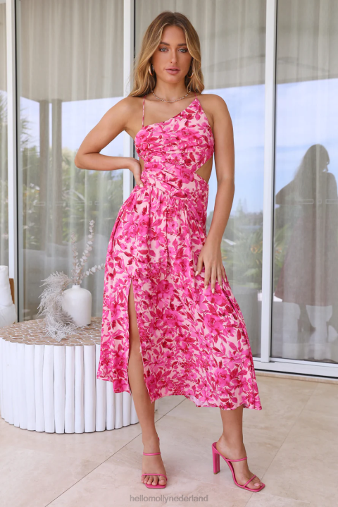 Zorg ervoor dat je gezien wordt in deze jurk, meisje. de blooming as one midi-jurk heeft een ontwerp met één schouder en een striksluiting. stijl met hakken voor alle complimenten.