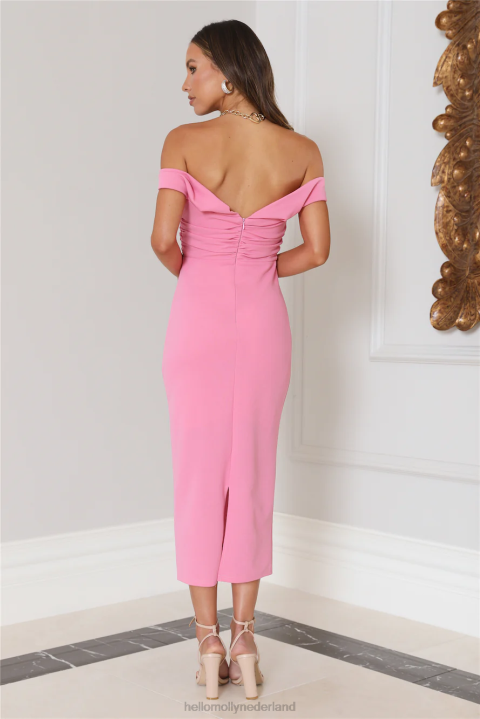 dat ben je klaar om alle likes te verdienen, meid. De breng de stijl midi-jurk heeft een off-the-shoulder ontwerp en een binnengreep. stijl met hakken om indruk te maken.