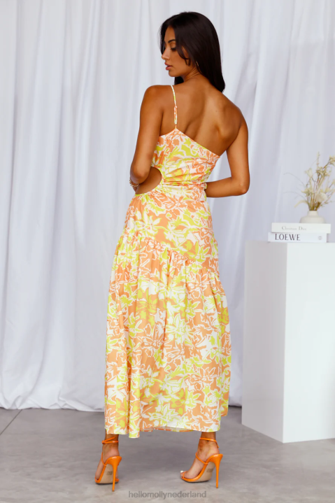 omarm je vrijgevochten karakter met de prachtige uitbundige jurk met een uitgesneden halslijn met één schouderband, uitsnijdingen in de taille en een lange zwierige gelaagde rok. style de jouwe met muiltjes en een cool opsteekkapsel.