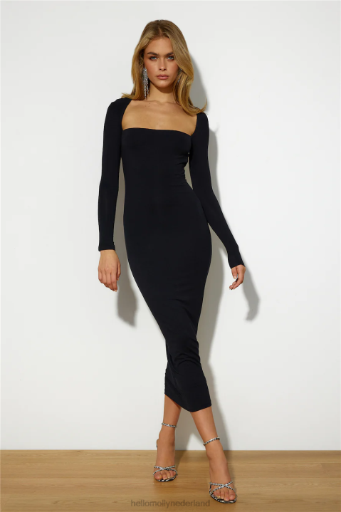 wees klaar om vele dubbele looks op straat te ervaren in de midi-jurk voor fashionista-liefhebbers. met lange mouwen en een uitsnijding aan de achterkant. style de jouwe met hakken met bandjes en sierlijke sieraden.