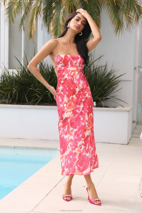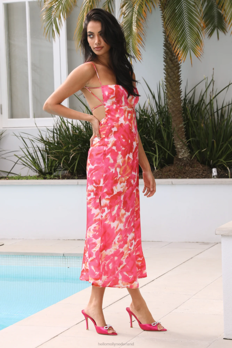 Fris je feestlook op meid in de Freedom is Here midi-jurk. met een open rug met striksluiting, zijdeachtig materiaal en een schattige split. stijl met hakken en krullen voor alle aandacht.