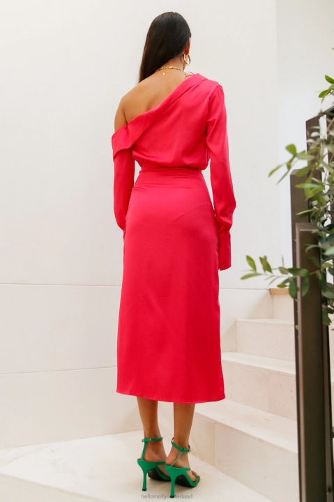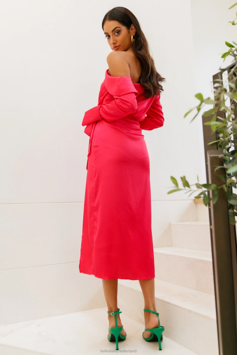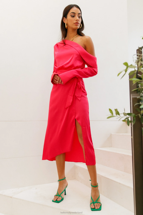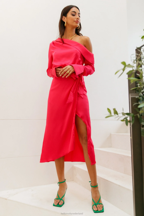 fantastisch. dit ene woord omvat je hele persoonlijkheid, dus jij verdient een jurk die net zo luid is als jij! introduceert de love on top midi met een gesneden halslijn met een omslaghalslijn, lange mouwen, een wikkeldetail en een asymmetrische zoomlijn. style de jouwe met een opgestoken kapsel en een roze lip.