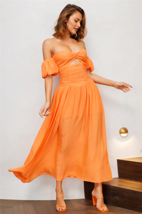 Home| jurken| midi-jurken| nightly dates midi-jurk oranje Hello Molly T6BF4621 kleding