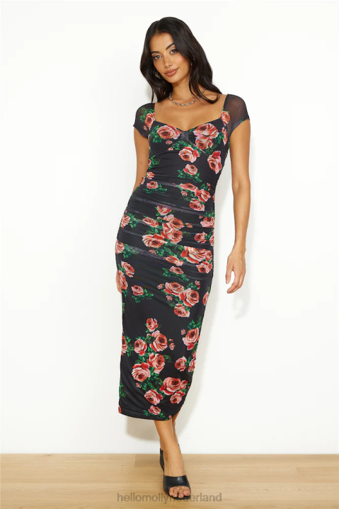 Dit is jouw reden om te winkelen, meid. de midi-jurk met snelle pasvorm heeft een rekbaar silhouet en een bloemendessin. je bent klaar voor complimenten als je het stylet met hakken en krullen.