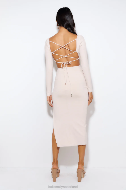 breng alle chique sfeer in de geribbelde midi-jurk op het dak. met een gekruiste achterkant en lange mouwen. stijl met hakken voor iedereen.