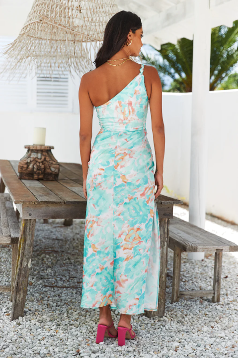verschijnen als een baby. De she is beauty midi-jurk heeft een schouderontwerp, knoopdetails en een zijsplit. draag met hakken en een minitasje.