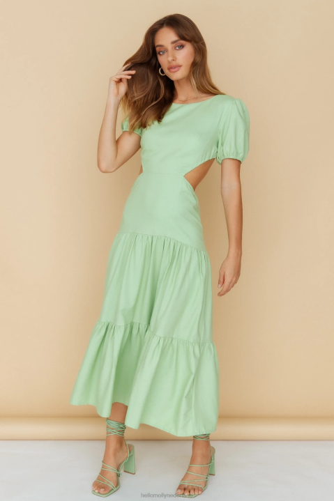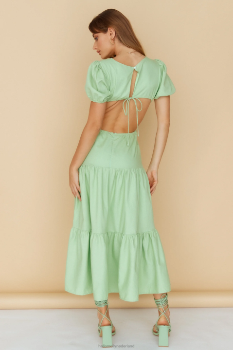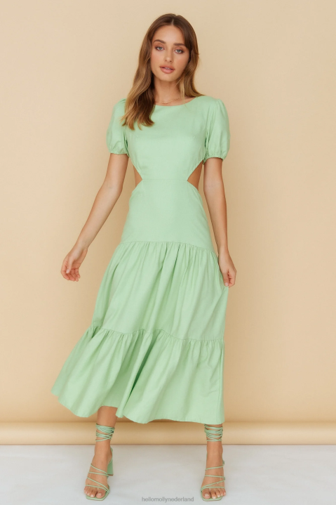 vloeit zachtjes naar beneden in deze schattige midi. met zijn pofmouwen, subtiele ronde hals, open rug en zwierige rok - jij bent de mooiste bloem van het stel! style de jouwe met hakken met bandjes en sierlijke sieraden.