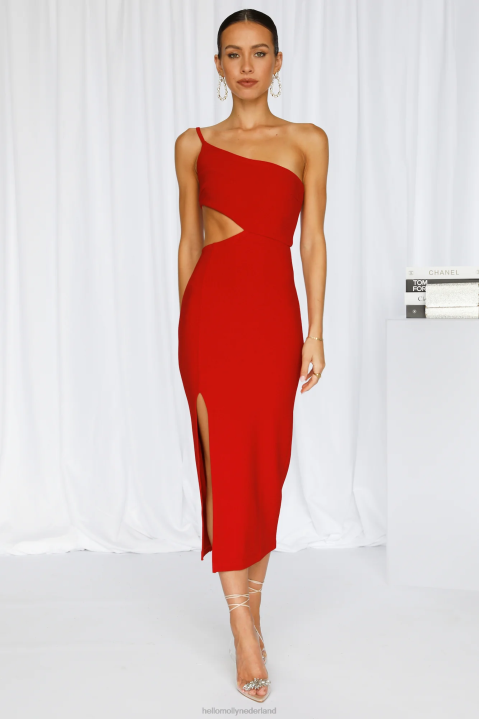 Home| jurken| midi-jurken| travel through midi-jurk rood Hello Molly T6BF3853 kleding