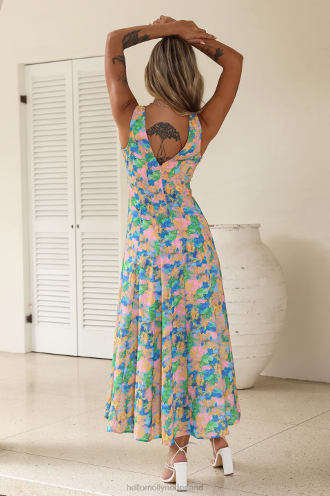 Dit is jouw reden om te winkelen! de zalige luxe midi-jurk heeft een v-halslijn en een bloemendessin. je bent klaar voor complimenten als je het stylet met hakken en krullen.