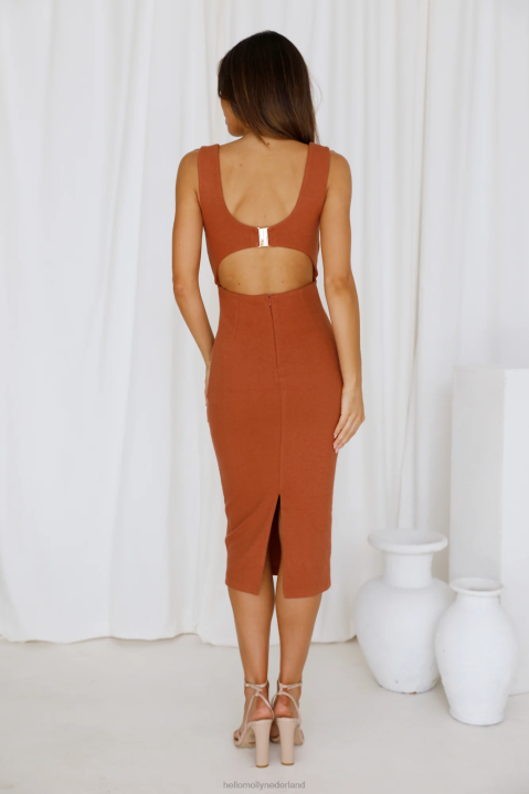 laat ze allemaal zo energiek aanvoelen met de goede vibes die je verspreidt in deze midi. voorzien van een gedraaide hartvormige halslijn met een open achterkant met een gouden sluiting, een uitsnede in het middenrif aan de voorkant en een bodycon-pasvorm. style de jouwe met muiltjes en golven.