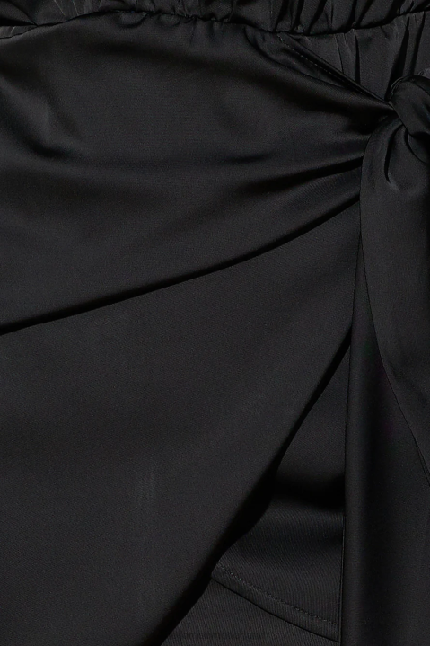laten we een andere stijl proberen, meid. De satijnen mini-jurk in godinstijl heeft een hoge halslijn, gedrapeerde details, een wikkelrok met striksluiting en knoopsluiting. stijl met hakken en een bijpassende tas.