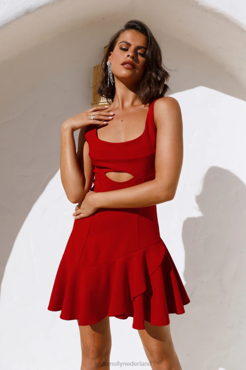 omarm je scarlett-stemmingen in dit zwierige schatje. deze lente-essential heeft een rechte halslijn met uitsnede bij de buste en een rok met ruches. style de jouwe met muiltjes en een haarklauw.