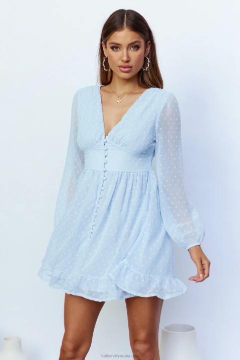 channel je innerlijke meisjesmeisje in de tweelingzusjurk. een prachtig ontwerp met lange mouwen en doorzichtige ballonmouwen. we zijn geobsedeerd door de ruches aan de zoom van de rok, de sierlijke knoopjes op de jurk en de prachtige v-hals. last but not least, de prachtige en subtiele stippen die door het hele kledingstuk heen te zien zijn. style het geheel af met bruine randen en een bijpassende crossbodytas.
