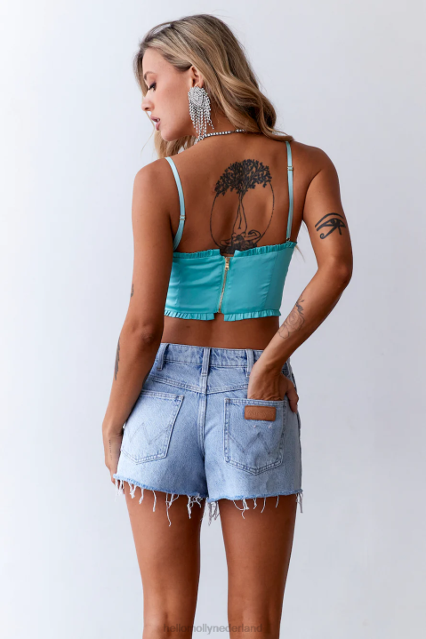 breng alle chique sfeer in de hello molly dream in zijden top. met striksluiting aan de voorkant en ruches. stijl met een minirok en hakken voor iedereen.