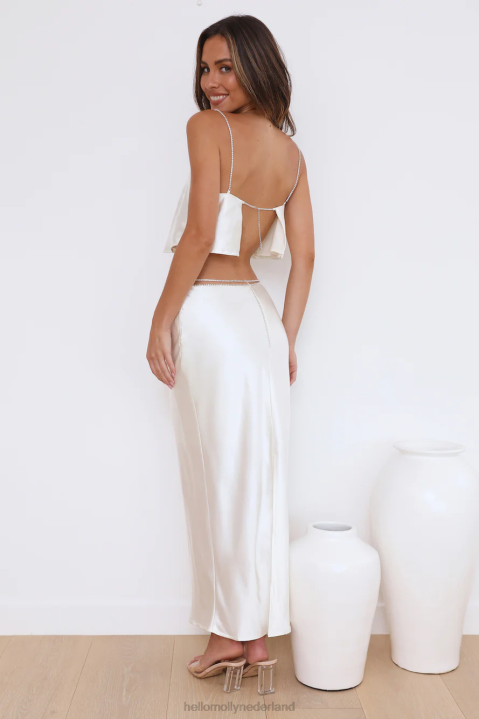 voel je prachtig in de luxe dream crop top. met diamanten bandjes en open achterkant. style met de bijpassende rok en hakken voor alle aandacht.