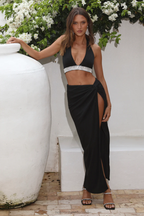 nieuw en trendy, meid. De play-off crop top heeft een elastische pasvorm met diamanten zoom. style met een broek of een maxirok en hakken voor de leukste look op het feest.