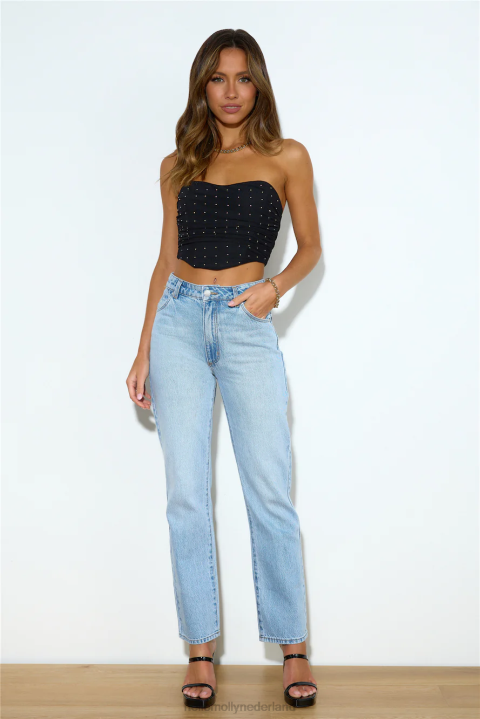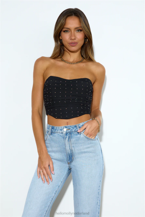 Meisje, laat je zien in de Sparks Joy crop top. met diamanten en baleinen op het lijfje. stijl met een minirok en hakken voor alle aandacht.