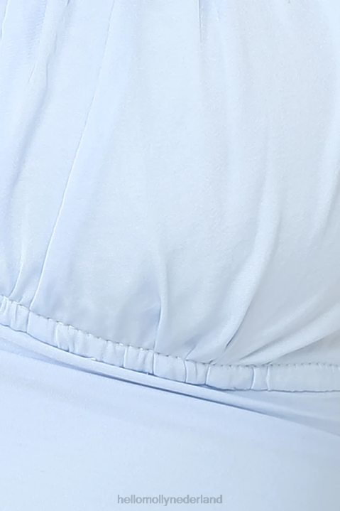 lengte van schouder tot zoom bij maat s: 33 cm. staalblauwe bovenkant. gevoerd. alleen koude handwas. model is een standaard xs en draagt xs. maatvast. lichtgewicht geweven satijnen stof; niet rekbaar. geen ritssluiting. elastische buste.verstelbare banden aan de achterkant.pullover-ontwerp.polyester.