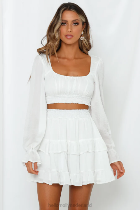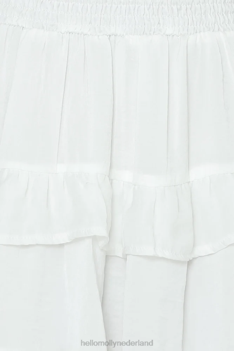 lengte van schouder tot zoom bij maat s: 33 cm. wit crop. gevoerd. alleen koude handwas. model is een standaard xs en draagt maat xs. maatvast.niet-rekbare satijnen stof; licht transparant in direct licht. gesmokte elastische buste. onzichtbare rits aan de zijkant.polyester.
