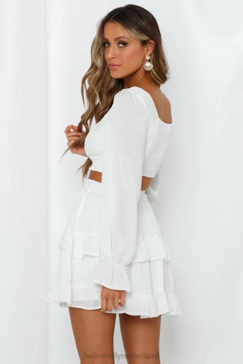 zei je 'zomervakantie' We krijgen een aantal serieuze reislustige vibes van onze crop op het scherm. dit zigeunerachtige gewas is het perfecte strandaccessoire met zijn ronde halslijn, gerimpelde buste, bouffantmouwen en comfortabel gesmokte achterkant. deze top past fantastisch bij je denimkeuze of bij de bijpassende minirok!
