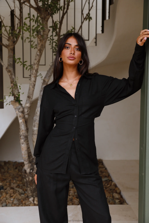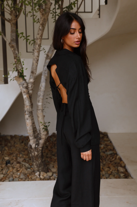 Je ziet er keurig uit mevrouw, en heel sexy, we vinden het geweldig dat je er van voor tot achter prachtig uitziet. Versla met het horizon-shirt zonder rug, de perfecte manier om je normale overhemd met knoopsluiting wat meer pit te geven. voorzien van kraag, voorzak, lange mouwen met manchetten en open achterkant met twee strikbanden. stijl met een pantalon en muiltjes.