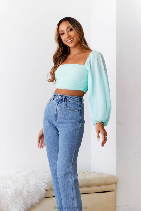 maak overal commotie ga maar, want waarom heb je niet echt een reden nodig om de schattigste te zijn We kunnen alleen maar goede tijden met je beleven in dit gewas met een schuine halslijn, een aansluitende buste en een dramatische gezwollen, doorzichtige lange mouw. style de jouwe met een minirok en hakken.