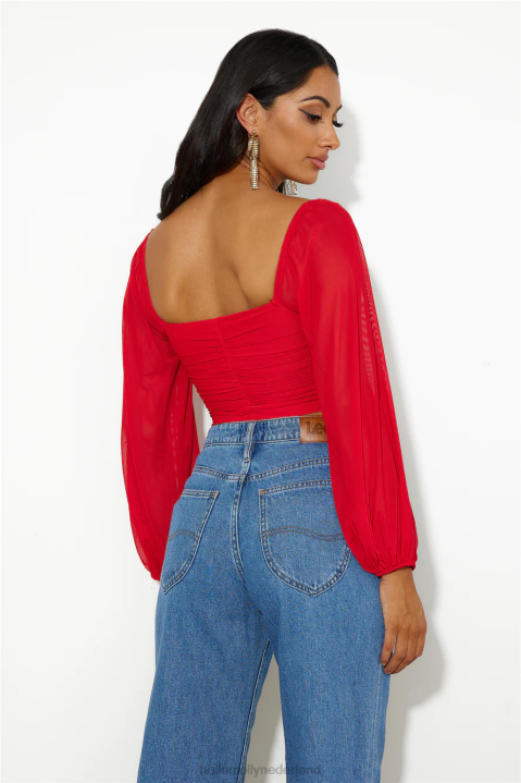 we houden ervan om ons te kleden om te overwinnen en wat is een betere manier om dat te doen dan met de betoverende hymnes crop this crop heeft een gewatteerde buste, ruches helemaal naar beneden en doorschijnende lange mouwen. combineer hem met een rechte jeans en muiltjes.